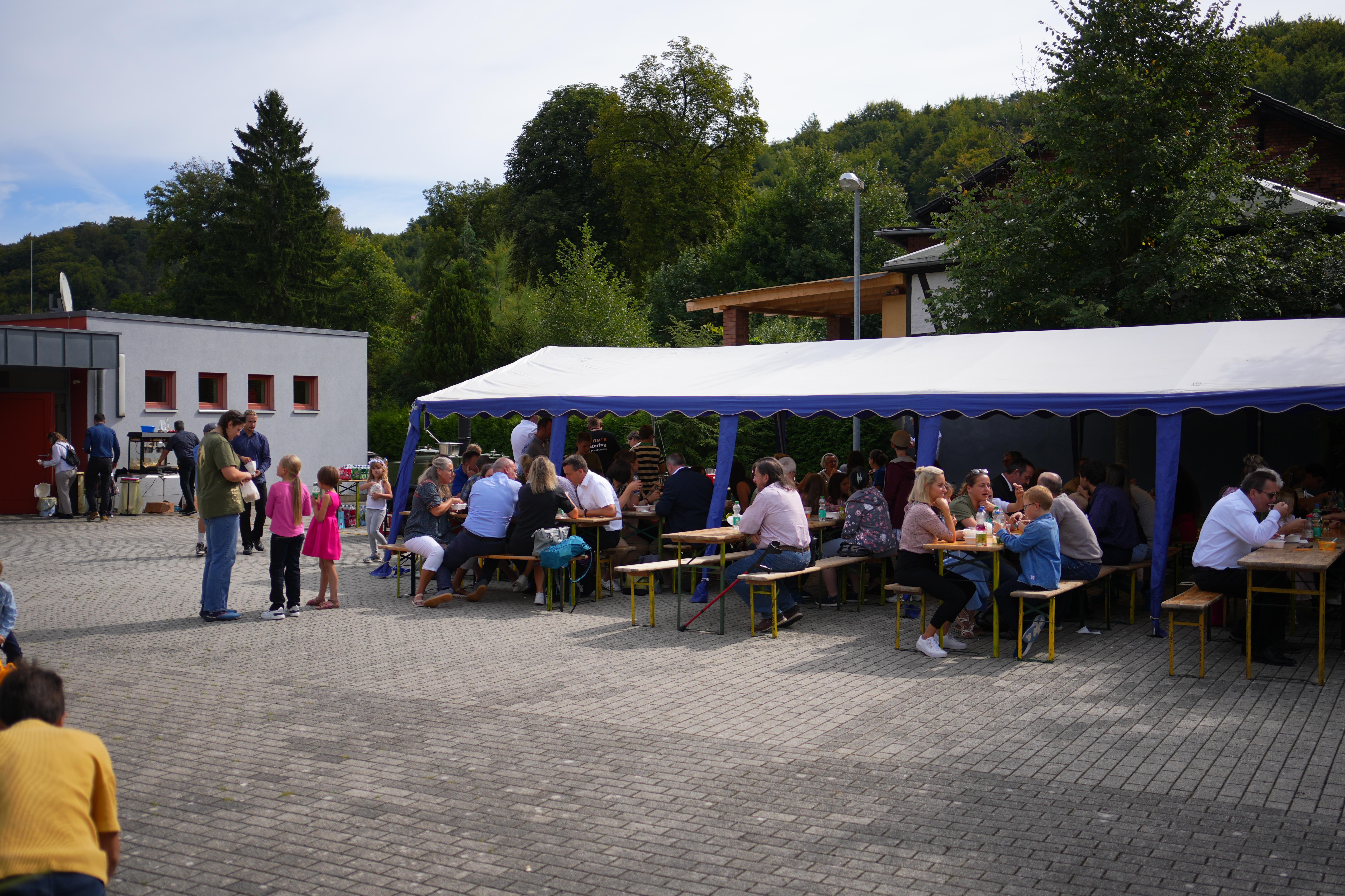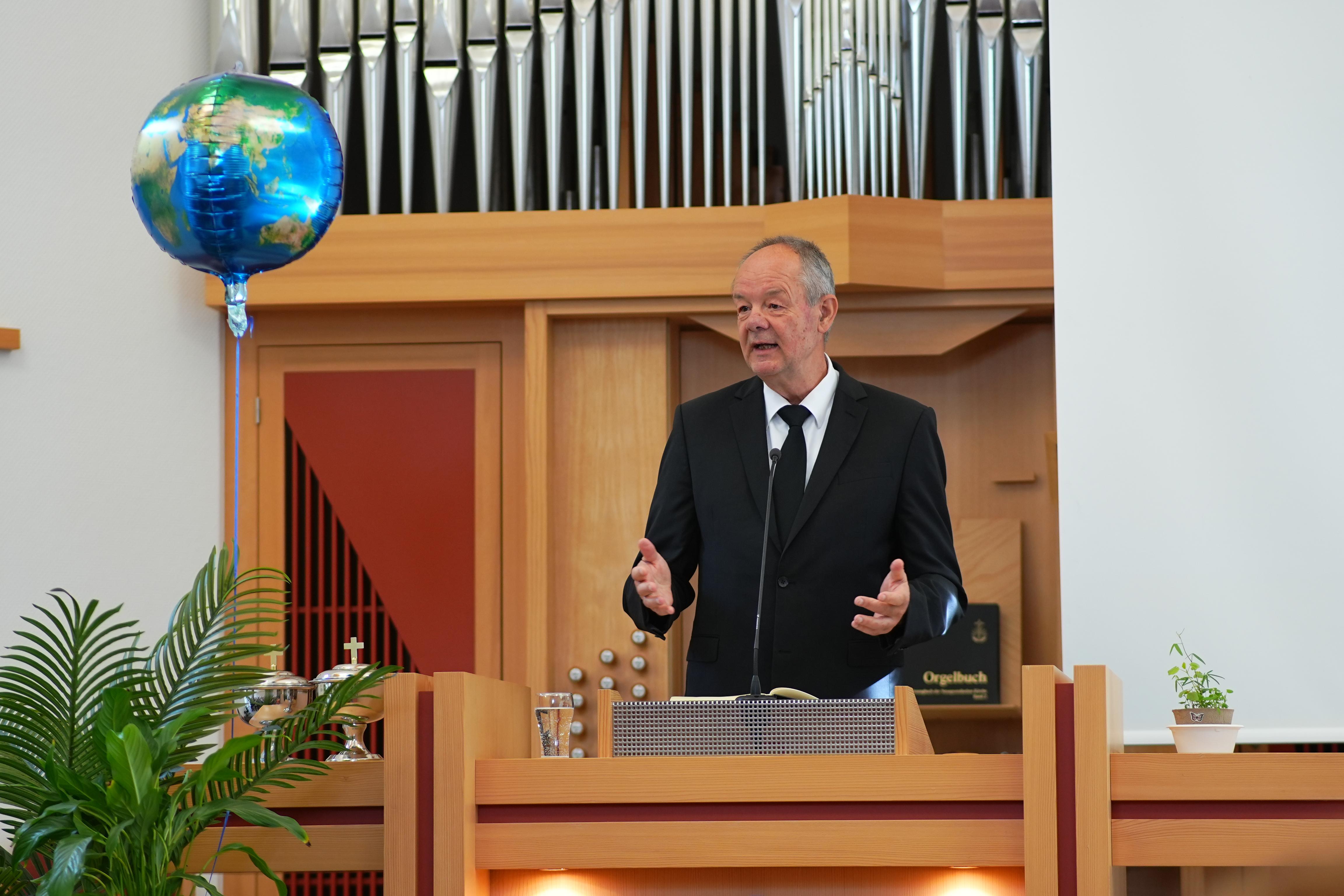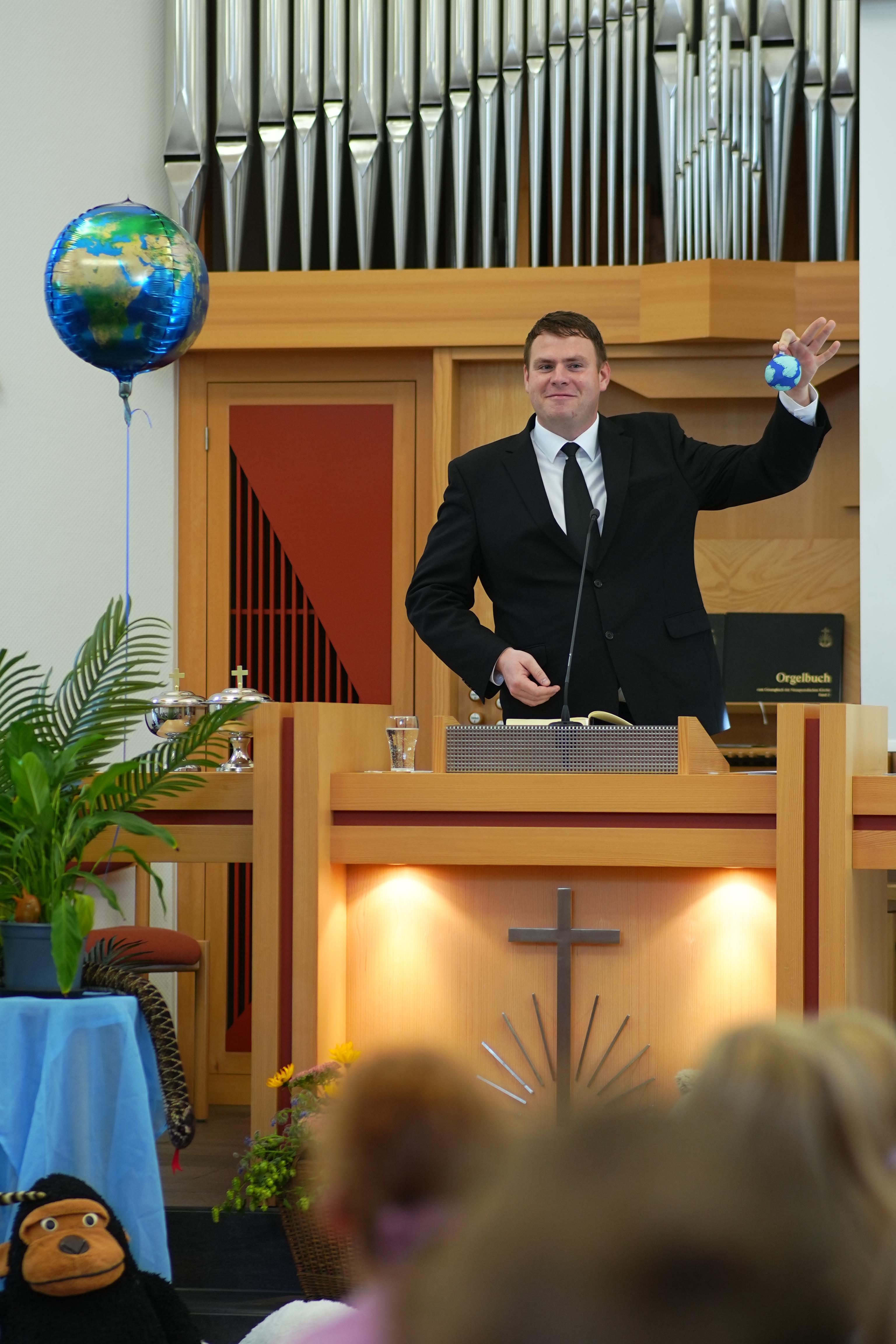 Los ging es mit einem Kindergottesdienst. Bezirksvorsteher Uwe Weyh erzählte eine kleine Geschichte von einem Laternenfest. Dabei stellte er viele Fragen: „Was hat Gott alles erschaffen?“ – und die Kinder riefen begeistert ihre Antworten: die Sonne, Tiere, Pflanzen, das Meer und natürlich auch uns Menschen!