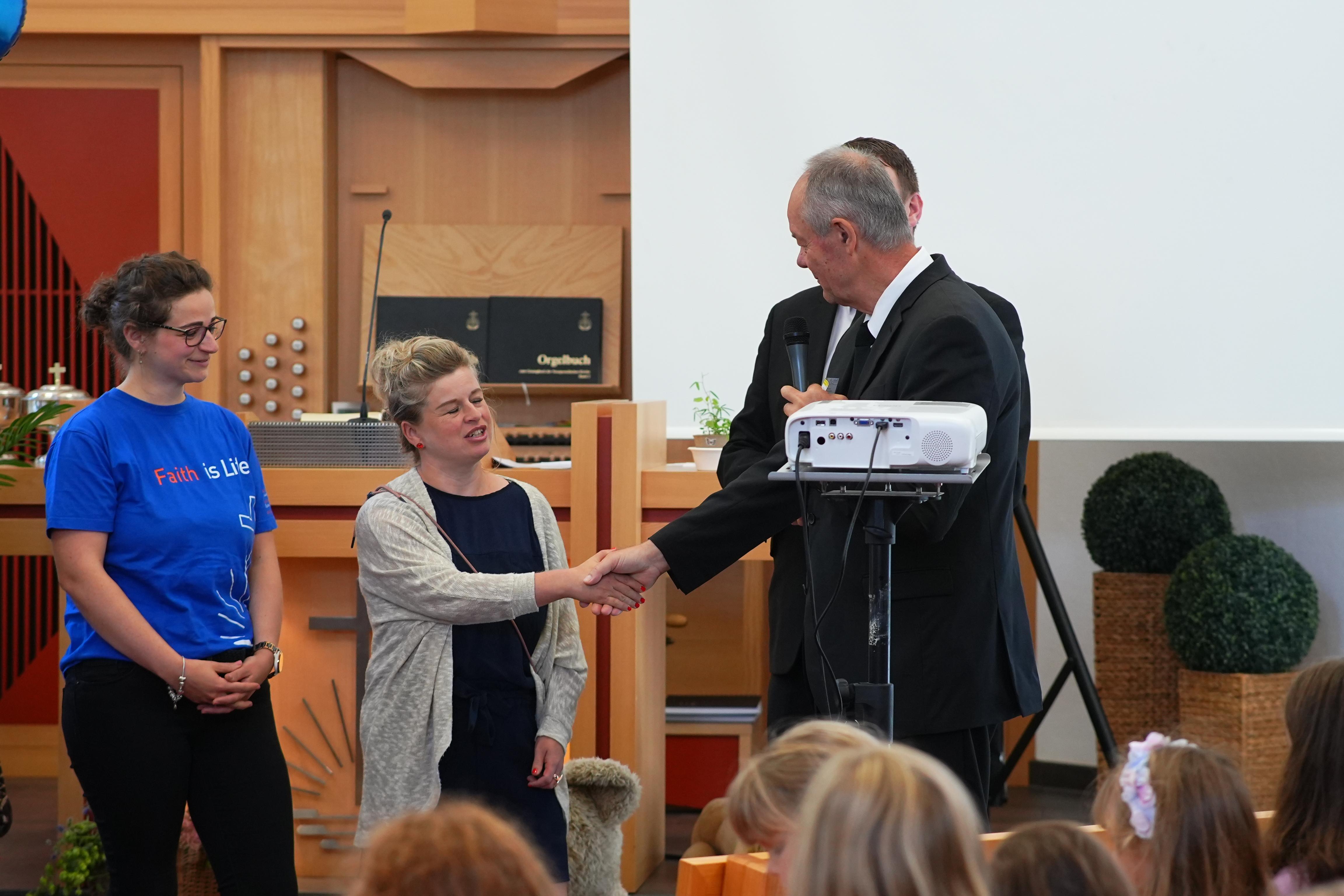 Danach wurde es ein bisschen feierlich: Priester Mario Polster wurde nach 27 Jahren von seiner Aufgabe als Kinderbeauftragter verabschiedet. Über so viele Jahre hat er für Kinder gebetet, Kindertage vorbereitet und uns gezeigt, wie sehr Gott uns liebt. Alle waren dankbar und klatschten für ihn. Gleichzeitig wurde das neue Team vorgestellt, das jetzt die Arbeit für die Kinder übernimmt.