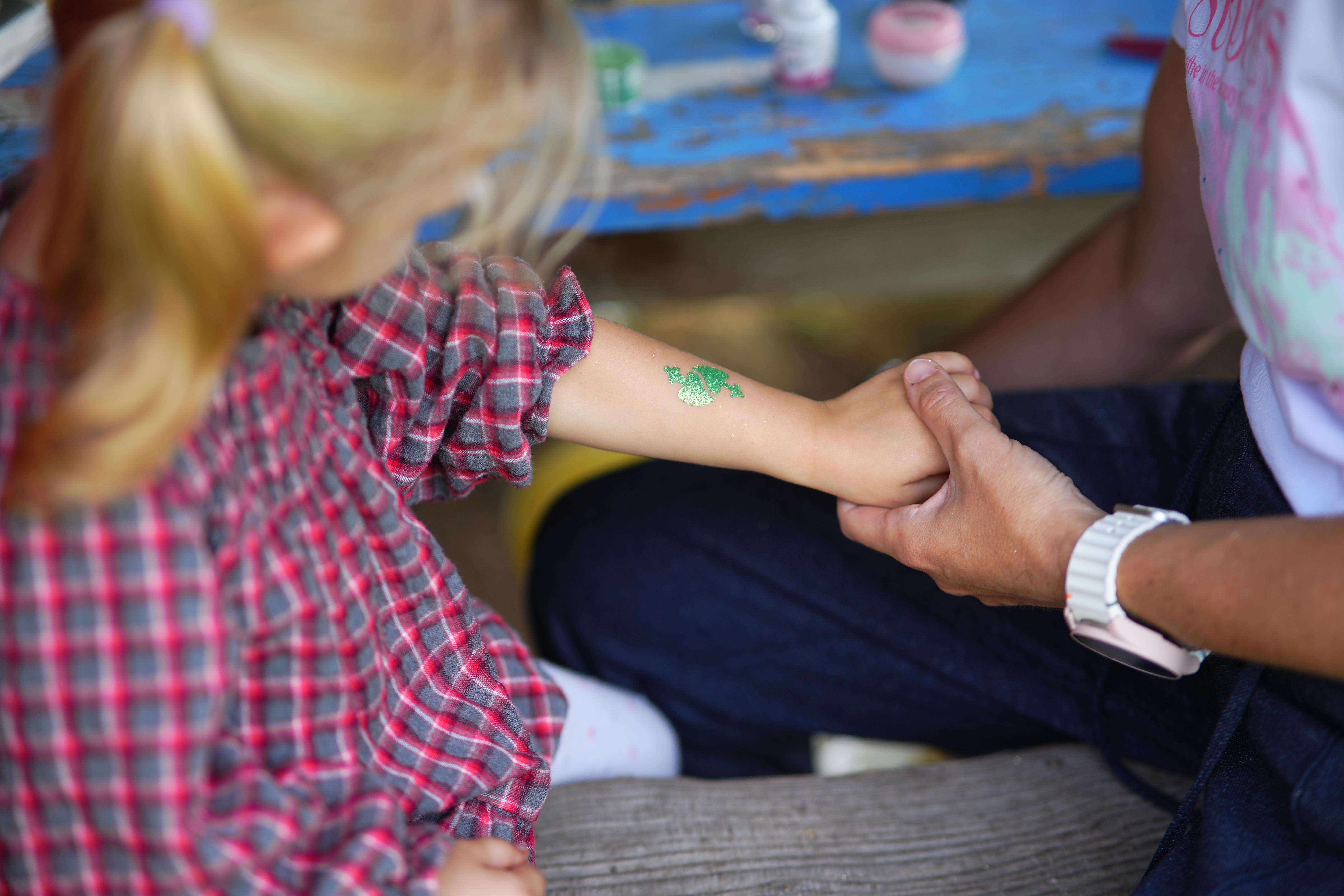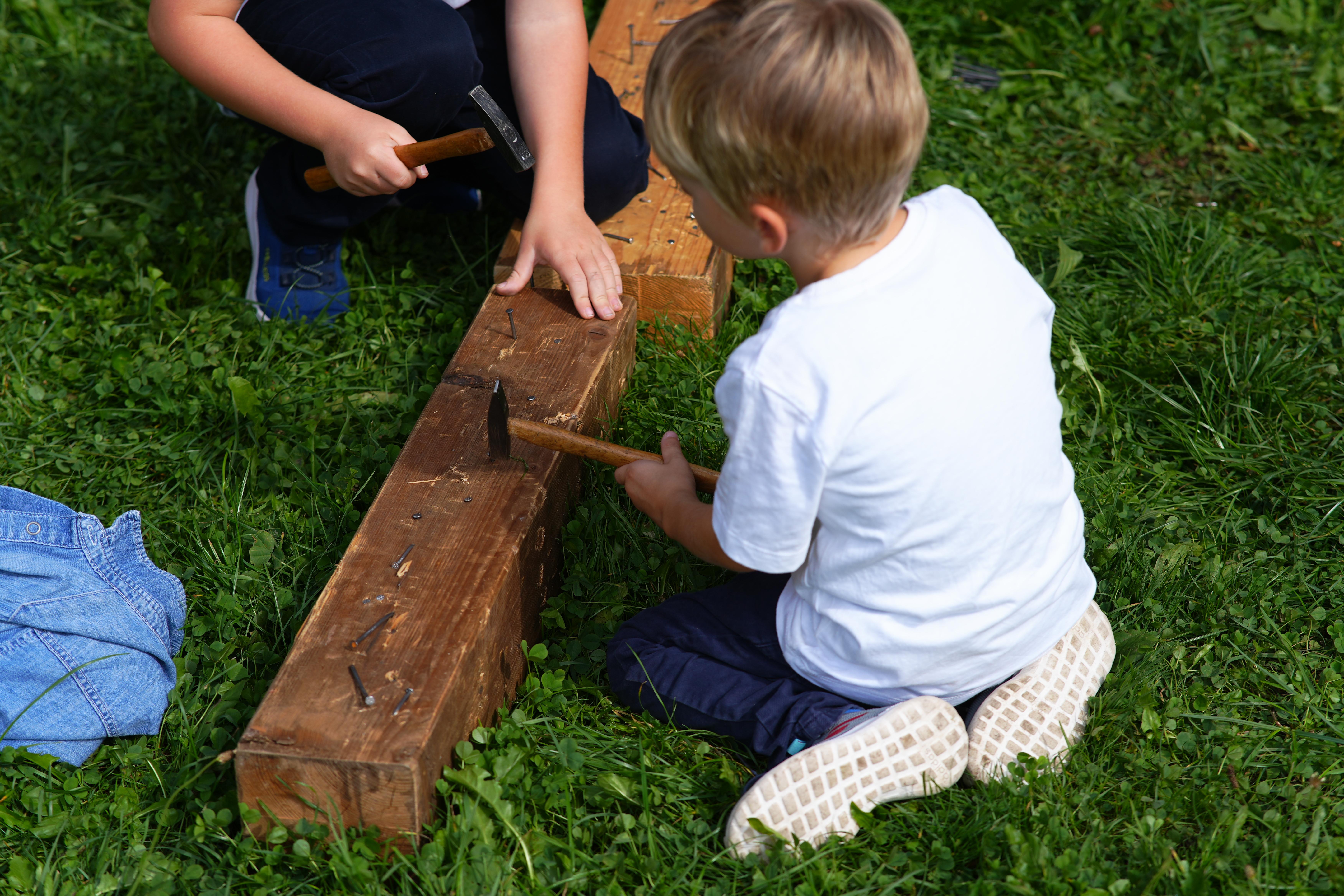 Nach dem Gottesdienst wartete ein leckeres Mittagessen auf alle: Nudeln mit Wurstgulasch, dazu Wasser oder Limonade. Gut gestärkt starteten wir in den Nachmittag, und da war richtig viel los. Manche Kinder spielten Fußball, andere probierten das Kistenfahren aus und lachten dabei herzlich. Es gab die Möglichkeit, sich bunte Tattoos aufmalen zu lassen, beim Geschmackstest mit verbundenen Augen Lebensmittel zu erraten oder beim Handwerken mit Hammer und Nägeln etwas Eigenes zu bauen. Auch das Basteln kam nicht zu kurz, und viele Kinder nahmen ihre Kunstwerke stolz mit nach Hause. Ein ganz besonderer Moment war, als Tauben in den Himmel stiegen und alle gespannt zusahen.